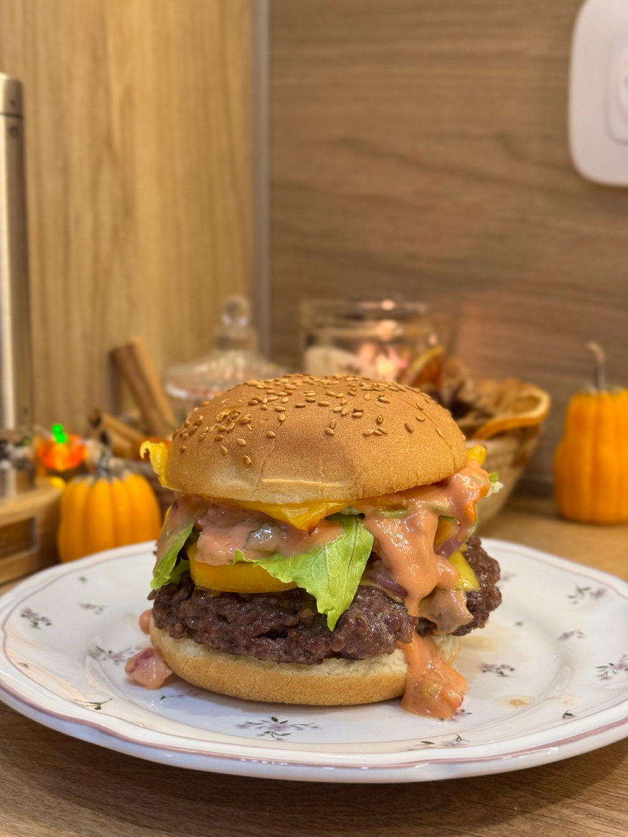Забудьте про фастфуд — эти домашние бургеры сочнее, сытнее и улётнее! 😍 🛒 Ингредиенты (на 3 бургера): 🍔 Булочки для бургеров — 3 шт. 🥩 Говяжий фарш — 400 г 🧀 Сыр для чизбургеров — 6 ломтиков 🥬 Листья салата айсберг — пару листьев 🥒 Солёные огурцы — 2 шт 🧅 Красный лук — 1 шт. 🍅 Томат — 1 шт. 🍅 Кетчуп — 3 ст. л. 🥄 Майонез — 2 ст. л. 🟡 Горчица — 1 ст. л. 🥓 Бекон — 3-4 ломтика 👨🍳 Рецепт: 1. Котлеты: Сформируйте из фарша 3 плотные котлеты. Обжарьте на сильном огне по 3–5 минут с каждой стороны, пока не появится румяная корочка. В конце положите на каждую ломтик сыра и накройте крышкой на 2 минуты, чтобы он расплавился. 2. Соус: Мелко нарежьте солёные огурцы и половину луковицы. Добавьте кетчуп, горчицу и майонез — перемешайте. Это будет ваш фирменный бургерный соус! 3. Булочки: Разрежьте булочки и подсушите их в духовке или в аэрогриле 2 минуты. На верхнюю часть выложите по ложке соуса и ломтик сыра — отправьте в духовку ещё на минутку, чтобы сыр слегка подплавился. 4.