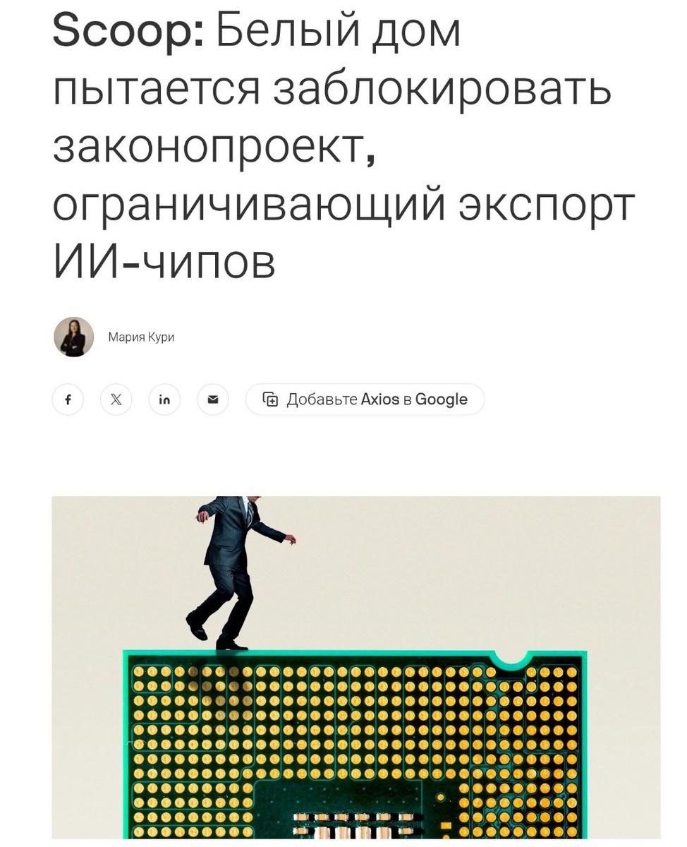 Classic Bull Trap Четыре источника, знакомые с ситуацией, сообщили Axios, что ключевые должностные лица Белого дома оказывают давление на законодателей на Капитолийском холме, чтобы те не включали ограничения на экспорт чипов искусственного интеллекта в Китай в ежегодный законопроект об оборонной политике. Почему это важно: Nvidia сильно выиграет, если закон GAIN AI Act не попадет в окончательную версию Закона о национальной обороне. @marketheart