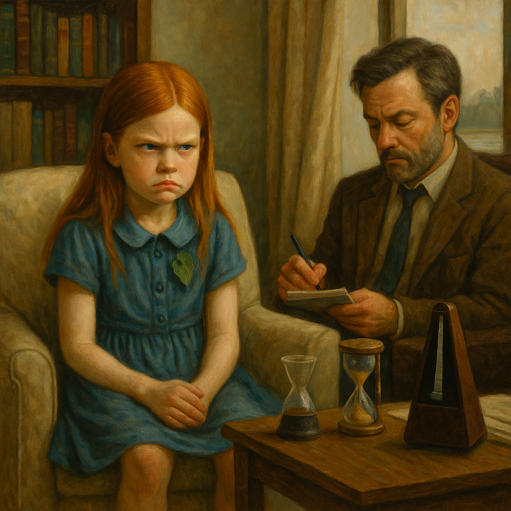 Доктор уставился в свой блокнот, что-то в нём чёркает. Время от времени он заглядывает за меня. Что-то позади меня его сильно интересует. Это либо шкаф, заполненный книгами, либо окно с видом на реку. Ненавижу реку. Всегда её ненавидела.