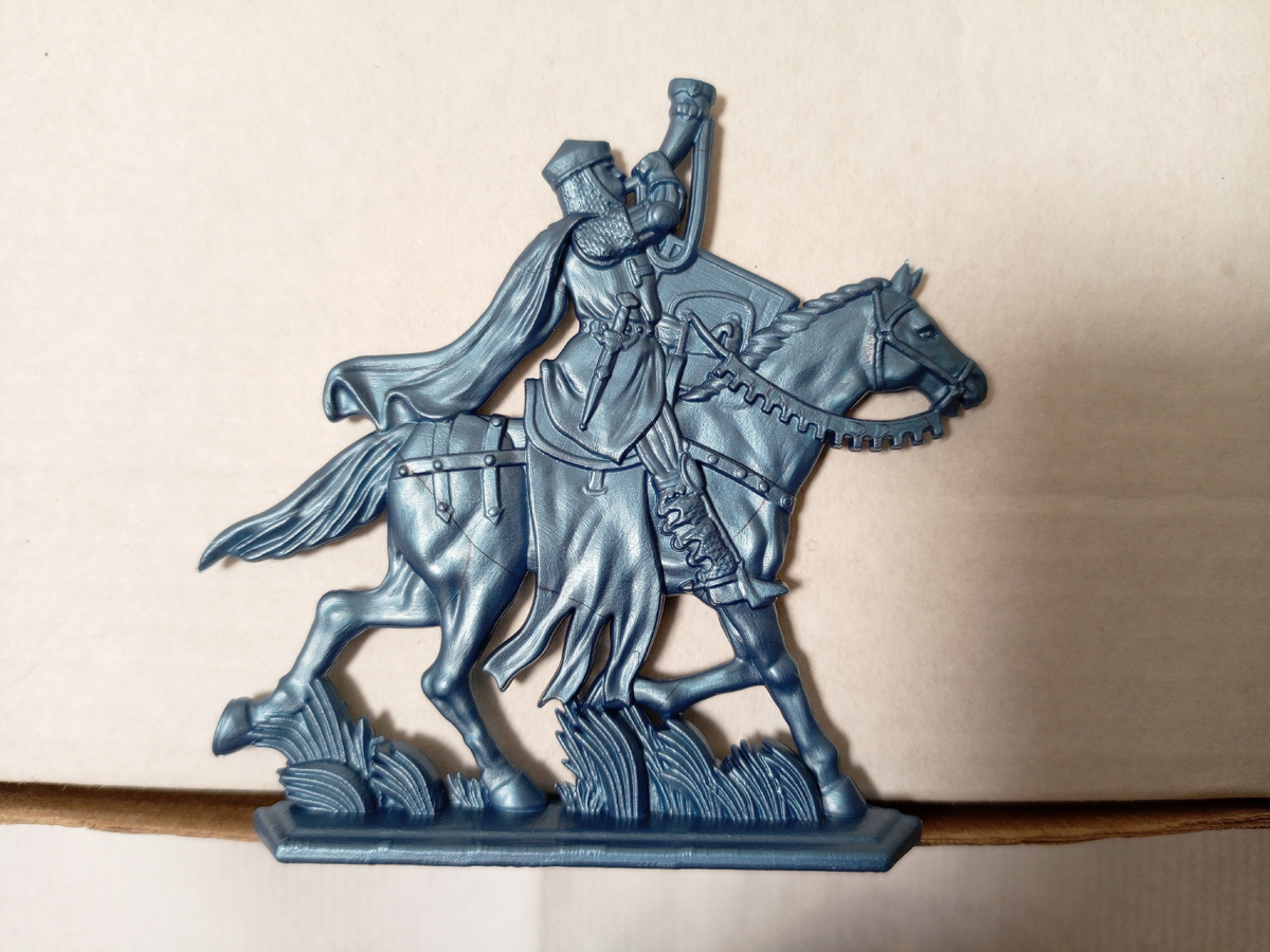 Ave любители солдатиков! Продолжаем долгоиграющую серию постов, в которой читатели радостно демонстрируют экспонаты своих коллекций. сегодня пополнение своей миниатюрной армии покажет Богуслав Рыбин. Фотографии - Богуслав Рыбин. Доброго здравия всем. Продолжаем делать обзоры на солдатиков от Евгения, спасибо ему за солдатиков, а товарищу Борману за публикацию. А у нас на обзоре "Ставка магистра Тевтонского ордена" от студии "Воины и битвы". Первым у нас идёт магистр Тевтонского ордена, который кого-то добивает копьём. У него шлем топхельм на котором красуются шикарные рога, ну как же без рогов и магистр Тевтонского ордена (хвала ордену, он не женат). За спиной развивается плащ. Он весь в кольчуге, есть наплечники с крестами, на сюрко нашит треугольный щит с немецким орлом. На поясе меч, кинжал и кошель с золотом(нужная вещь во все времена). В левой руке треугольный щит с крестом и немецким орлом. На коне попона с крестом в центре которого щит с немецким орлом. Второй у нас знамено