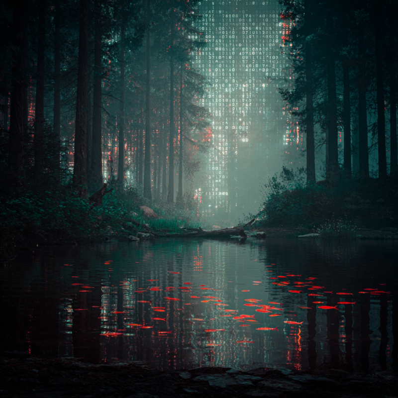 Я материализовался у точки назначения, на краю леса. Вокруг потоки данных сливались в одно большое озеро — даталейк. На берегу озера сидел старик с удочкой в руках и в широкополой шляпе. Я активировал подпрограммы мониторинга и защиты: приближаться к старику без них было бы самоубийством. — Здесь опасно ловить рыбу, — сказал я, когда подошел совсем близко. Сначала ко мне повернулась только голова, а потом резко, без промежуточных движений остальное тело синхронизировало положение. Старик теперь сидел лицом ко мне, а удочка крепилась на треноге позади него. — Еще не закончил, — ответил старик. — Мне предстоит выловить еще очень много. Иначе проект не будет целым. Он синхронизировался в прежнее положение с удочкой в руках, будто забыв про меня, но я чувствовал трафик, — старик продолжал сканировать меня всё это время. Леска напряглась, утягивая за собой удочку — старик быстро среагировал и потянул на себя, вытаскивая рыбу из озера. Он взял её в руки, тщательно осмотрел, а потом скинул в
