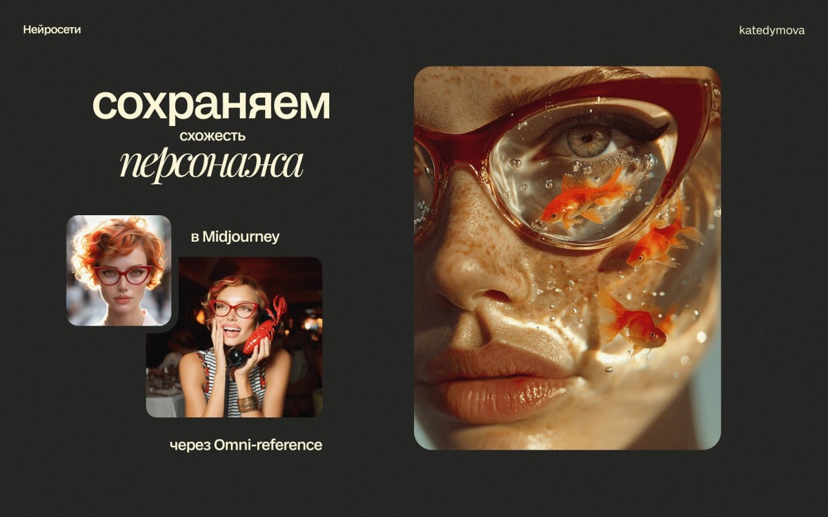 Как поддерживать схожесть персонажа через Omni-reference🤍 Сейчас сотрудничаю с компанией, в которой есть утвержденный персонаж девушки. Ее постоянно нужно внедрять в разную среду: от печатных макетов до digital среды. В этом плане мне очень помогает Omni-reference в Midjourney. Но все равно отметила, что образ не всегда выходит корректным, а порой, получается полная ерунда) Поэтому приходится методом проб и ошибок делать не одну серию генераций Вот что важно учитывать при написании промта, ссылаясь на референс: 🤍 Обязательно прописывайте цвет глаз. Midjourney может не распознать эту деталь по фото и сделает цвет, основываясь на окружении или освещении 🤍 То же самое касается прически и цвета волос. Убедитесь, что эти детали прописаны четко и соответствуют вашему персонажу 🤍 Если у персонажа есть характерный аксессуар, например, очки, то важно прописывать их форму оправы и цвет как в моем случае — кошачий глаз, красно-бордовой В противном случае нейросеть может проигнорироват