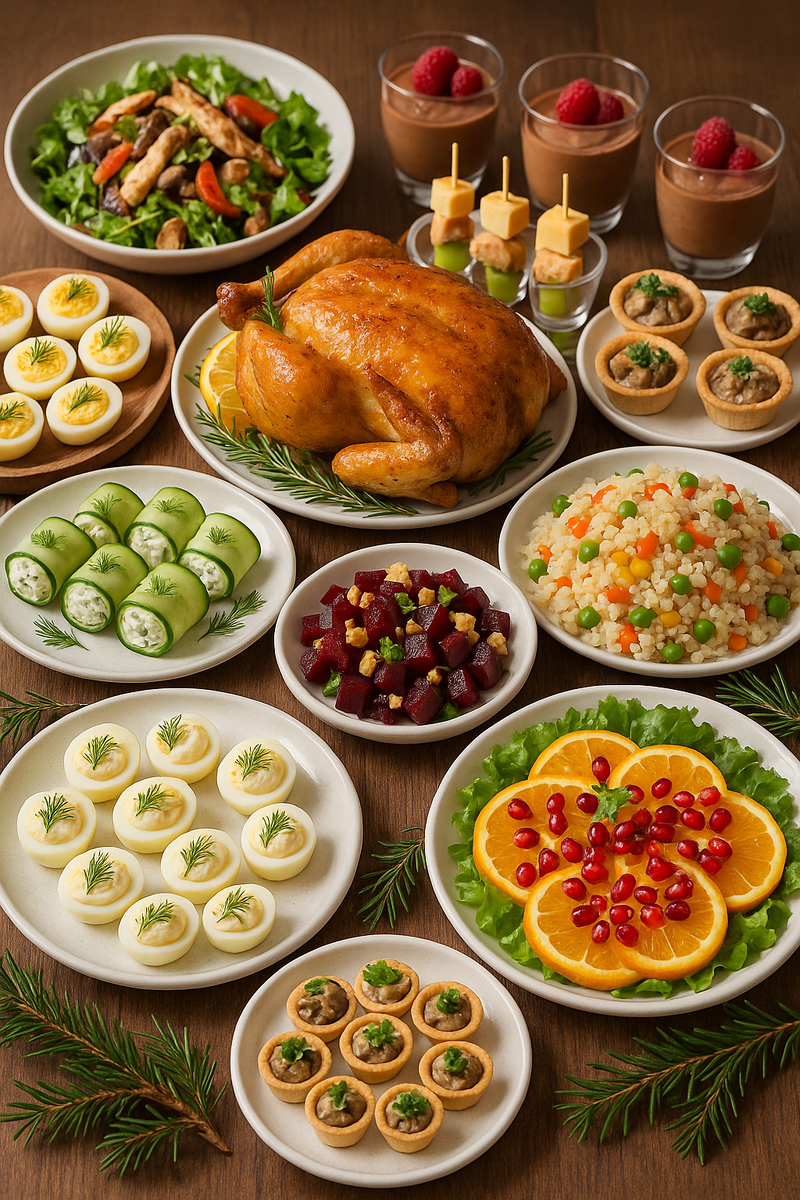 Новогоднее меню до 5000 рублей — реально? Более чем! Сегодня делюсь готовым набором блюд, которые выглядят празднично, стоят недорого и готовятся без лишней суеты. Закуски, салаты, горячее и десерт — всё, что нужно для красивого новогоднего стола. Цена: ~215 ₽ Ингредиенты: