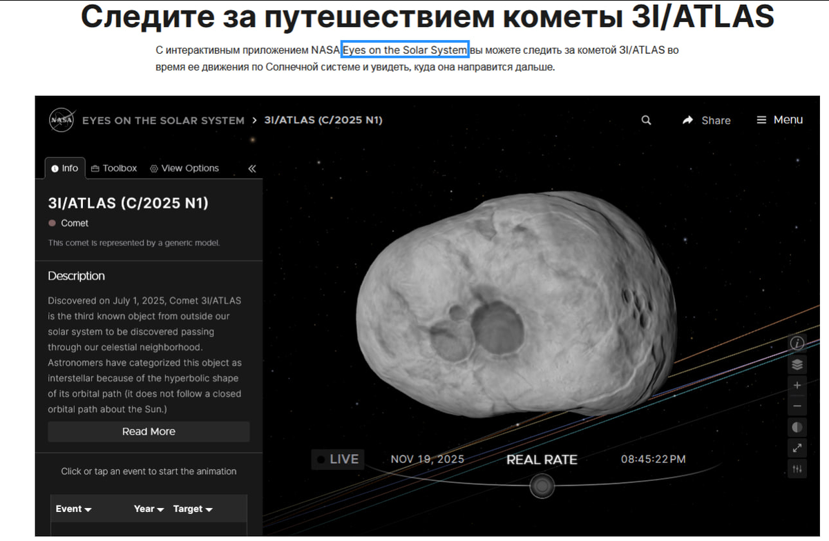 НАСА созывает срочный брифинг, на котором обнародует фото кометы 3I/ATLAS