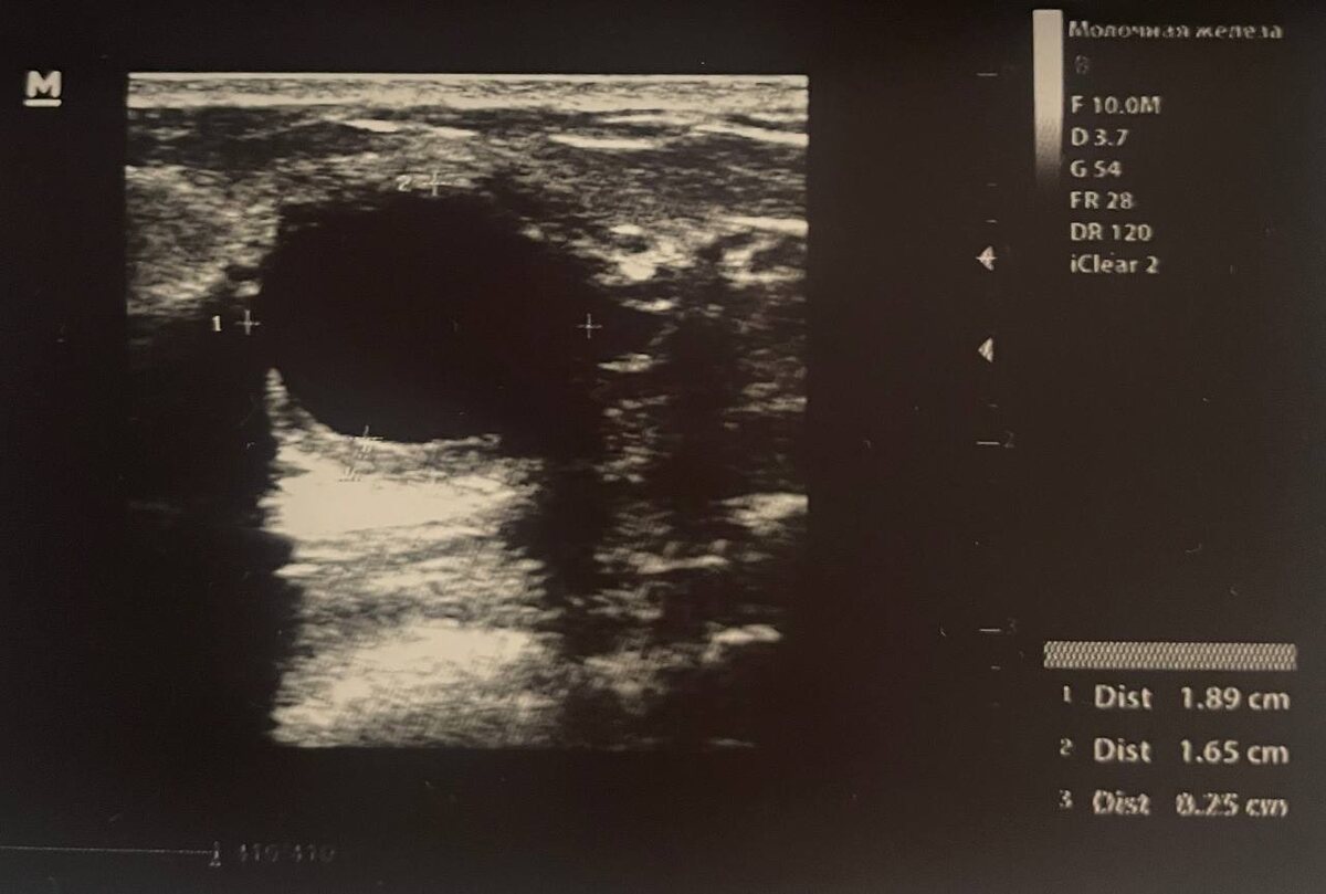 При воспалении кисты молочной железы в ней не обязательно будет определяться эхогенная взвесь. В данном случае визуализируется воспалительная инфильтрация стенки кисты при вполне однородном анэхогенном содержимом. У пациентки множественные кисты молочных желёз, некоторые из которых периодически воспаляются. Кисты могут нагнаиваться из - за гормональных нарушений, заболеваний, вызывающих снижение иммунитета, травм или даже стресса - который может вызвать дисбаланс гормонов, в том числе половых. #кистамжузи