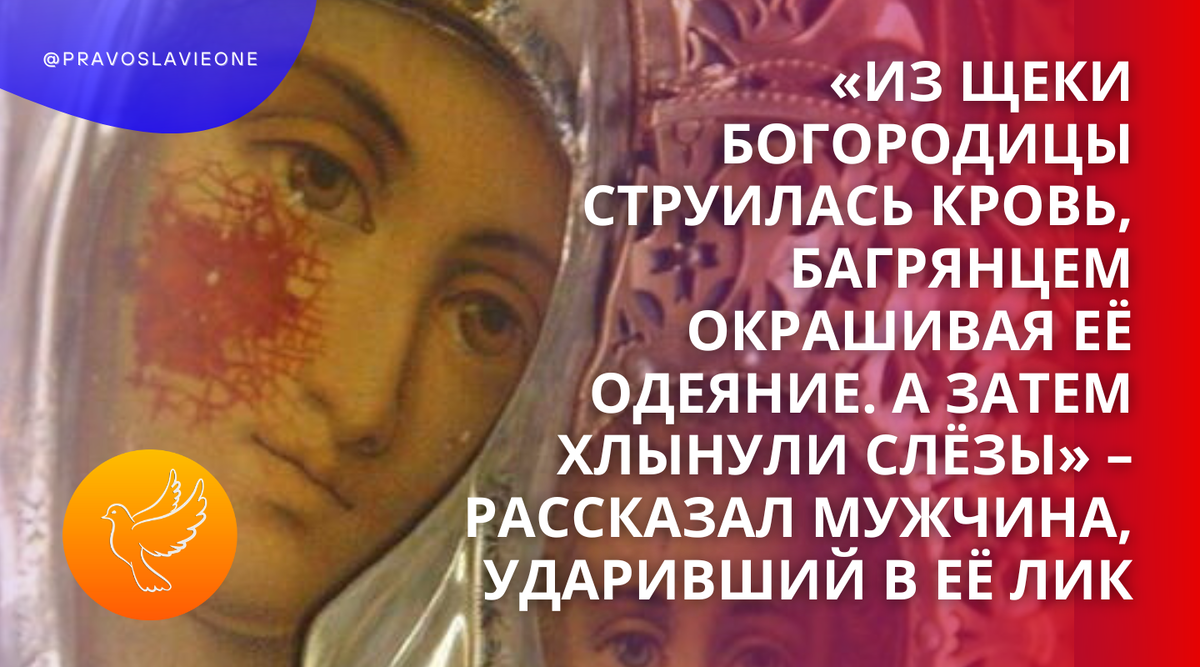 Он обратил взгляд на икону и… оцепенел. Из пронзённой щеки Богородицы сочилась живая кровь, окрашивая Её одежды в алый цвет.