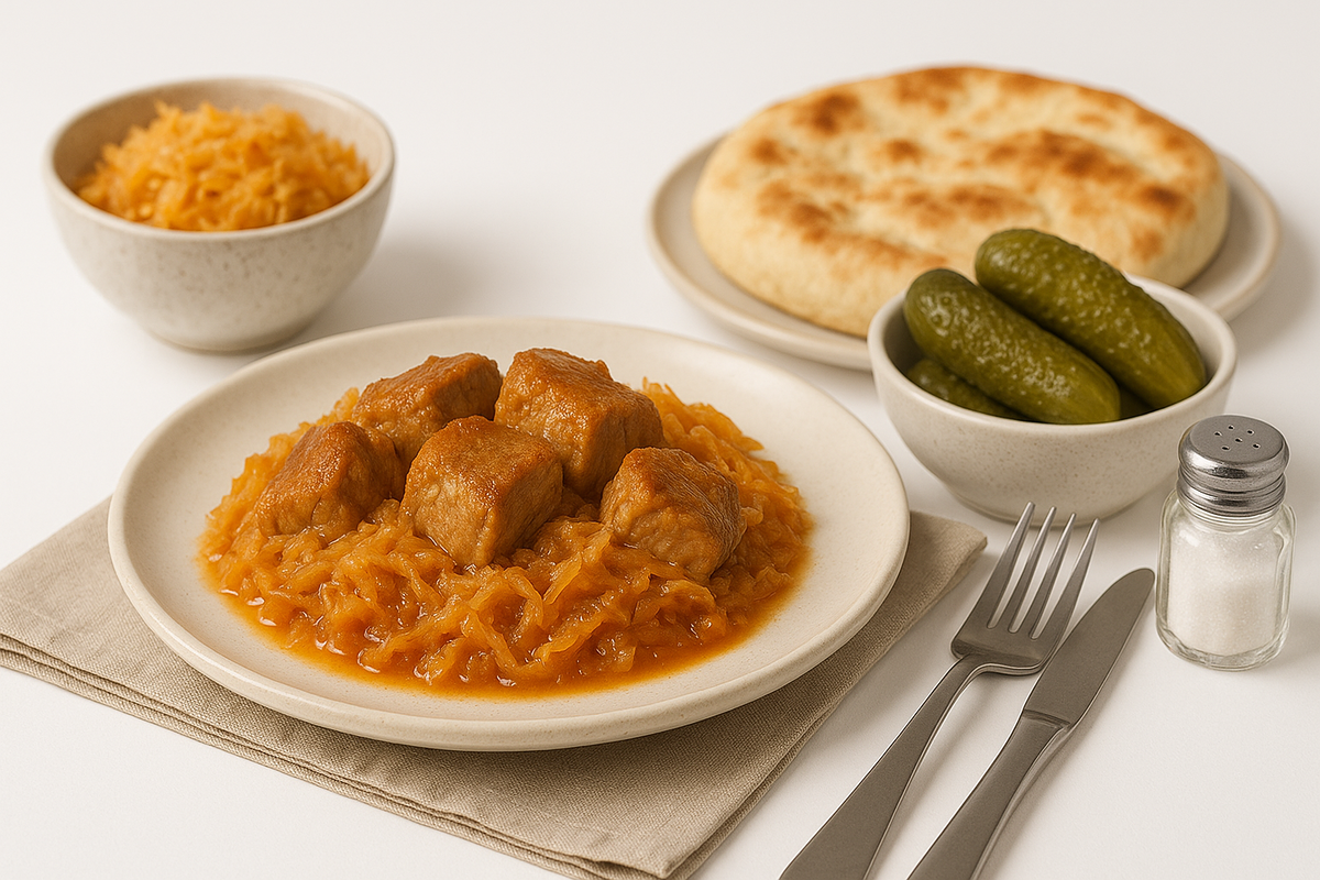 Свинина, тушёная с квашеной капустой, звучит просто, но в хорошей кухне простота играет только в плюс. Здесь важна сочность мяса, правильная кислотность капусты и медленный огонь, который превращает всё в мягкое ароматное рагу. Блюдо подходит для будней и круто заходит в холодное время года. Калорийность на 100 г Ккал 127 Белки 9.1 Жиры 8.3 Углеводы 3.2 Свинина (шея или лопатка) 500 г Квашеная капуста 400 г Лук 1 шт Морковь 1 шт Томатная паста 1 ст. л Соль, специи по вкусу Свинину нарезай средними кусочками и обжаривай до лёгкого румянца. Добавь лук и морковь, прогрей пару минут. Вмешай капусту, томатную пасту и немного воды. Уменьши огонь, накрой крышкой и оставь тушиться примерно 60 минут. Мясо должно стать мягким, а капуста - сочной и ароматной. Если капуста слишком кислая, промой её под проточной водой. Для более плотного вкуса добавь немного паприки или чёрного перца. Не спеши с огнём. Чем медленнее тушится, тем нежнее результат. Захочешь более яркий вкус - обжарь капуст