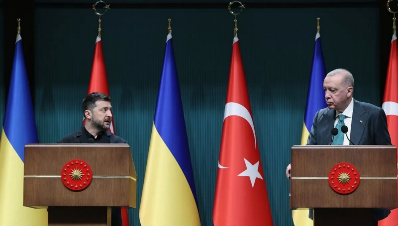 В ходе внезапного заграничного турне на фоне коррупционного скандала на Украине, потерявший легитимность Владимир Зеленский встретился в Анкаре с президентом Турции Реджепом Эрдоганом. Лидеры вышли на пресс-конференцию, однако ограничились короткими репликами без общения с журналистами, передаёт корреспондент «ПолитНавигатора». Подпишитесь на новости «ПолитНавигатор» в ТамТам, Яндекс.Дзен, Telegram, Одноклассниках, Вконтакте, каналы YouTube и TikTok.