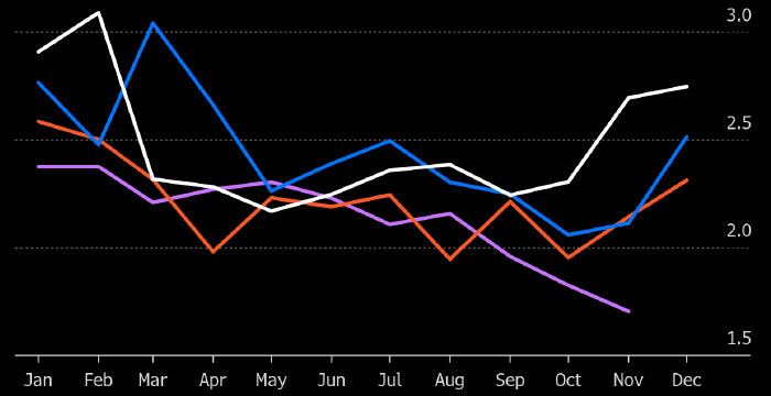 Это стало следствием санкций и атак Украины на российские НПЗ, отмечает агентство. Морской экспорт нефтепродуктов из России по годам в млн б/д: белым — 2022, синим — 2023, оранжевым — 2024, фиолетовым — 2025. Данные: Vortexa, источник: Bloomberg В первой половине ноября морской экспорт нефтепродуктов из России опустился до самого низкого уровня с начала СВО, пишет Bloomberg со ссылкой на данные Vortexa. Это стало следствием санкций и атак Украины на российские НПЗ, отмечает агентство. С 1 по 15 ноября включительно морской экспорт нефтепродуктов из России снизился до 1,7 млн б/д, что почти вдвое меньше показателя февраля 2022 года. Это — новый антирекорд с момента начала СВО. Экспорт дизельного топлива незначительно вырос, чему в основном способствовали поставки в Турцию и Африку. Сюда — благодаря географической близости этих локаций — топливо может быть доставлено до вступления в силу санкций США против «Роснефти» и «Лукойла». А вот поставки нафты и мазута, направлявшиеся в основном в