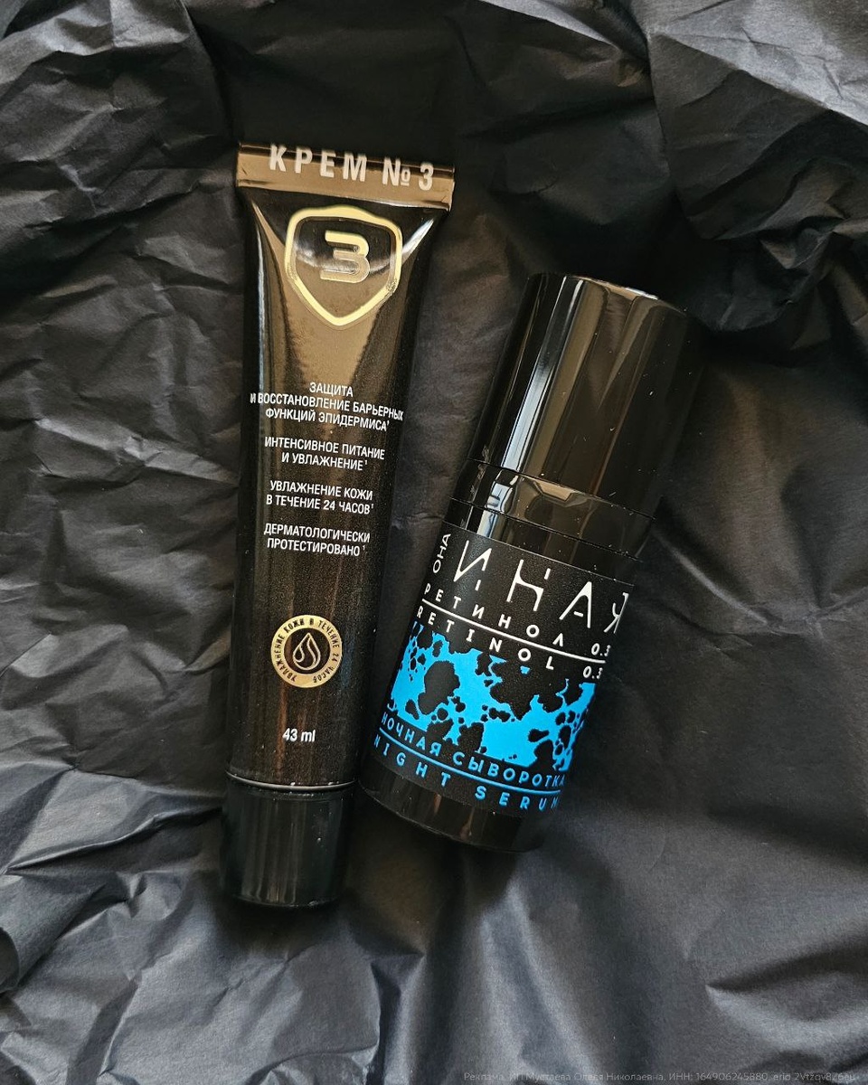 Кажется, что главное в жизни, найти идеального спутника. Но, если честно, куда важнее составить идеальную схему ухода. Потому что мужчины могут приходить и уходить, а вот хорошая кожа остаётся с вами всегда. И я вам принесла сегодня такую схему, что её хочется ставить в рамочку и делать патент. Расскажу про легендарную четвёрку «Она Иная», которой сама пользуюсь. Мой выверенный ритуал восстановления и омоложения Что будет, если собрать всё в один пазл? Она Иная это бренд, который создаёт уход, где активы сильные, но кожа при этом спокойная, напитанная и сияющая. И именно поэтому их четверка так идеально работает именно вместе 1. Ночная сыворотка с ретинолом: активный лидер Это интересный ретинол: умный, защищённый, который работает мощно, но без драмы Внутри: • Ретинол для омоложения и обновления • Эктоин + центелла + солодка + зеленый чай для успокоения • Церамиды и липиды для защиты барьера Хорош для новичков и тех, кто хочет «мощь без красноты» 2. Крем N3 надёжный тыл Тот самы