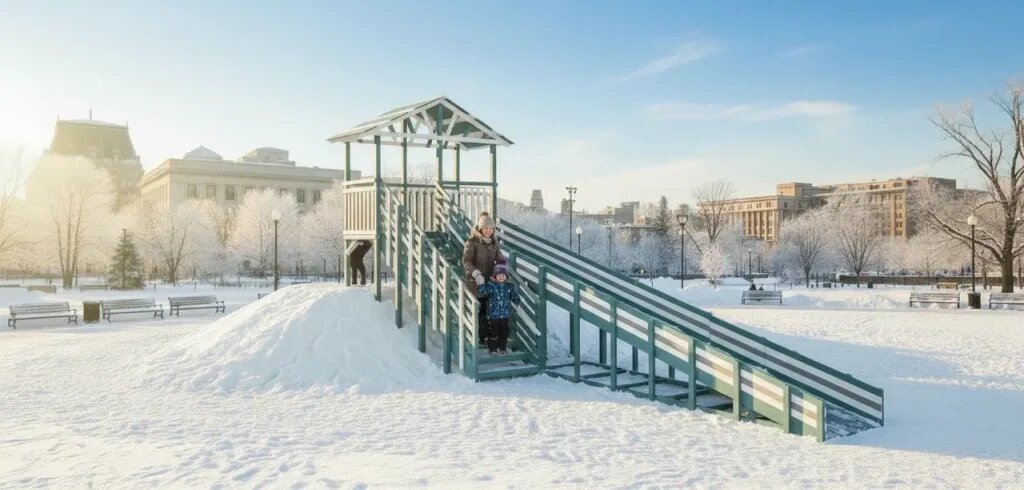 Устанавливать горку зимой - не проблема. Промёрзший грунт кажется помехой только на словах. На деле всё проходит быстрее, чище и даже легче, чем летом. Ниже - как это происходит в реальности. Промёрзшую землю копать не нужно. Горка ставится на поверхность, а не «в землю», поэтому минусовые температуры не мешают. Монтажники просто снимают слой снега, выравнивают место и сразу собирают горку. Зимой нет грязи, болота и размытых мест - монтаж идёт чище. Зимой земля плотная и устойчивая. Она даёт идеальную опору: конструкция стоит ровно и не шатается. Если есть уклон - его компенсируют: деревянными проставками, плотным настом или корректировкой угла установки. Горка получается устойчивой без копки. Зимние горки Савушка специально сделаны так, чтобы стоять на плотном снегу: Горка уверенно выдерживает вес детей и взрослых. Даже при морозе. После установки дети могут кататься сразу - ничего ждать не нужно. Когда снег тает, конструкция мягко переходит на грунт. При желании можно закрепить её п
