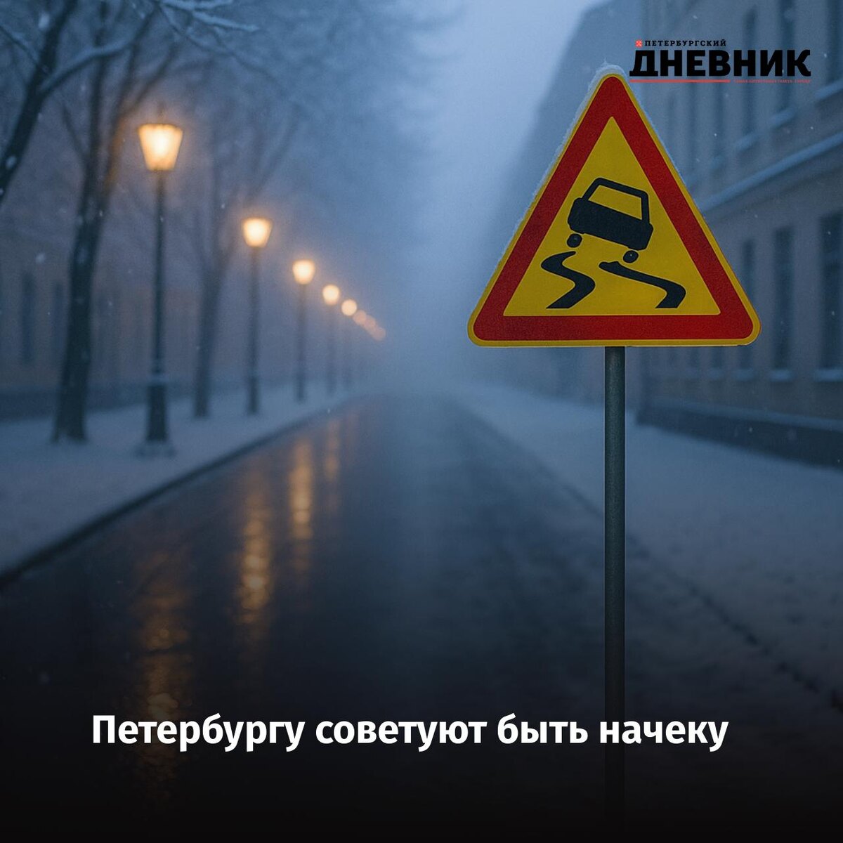⚠️ В Петербурге объявлен «жёлтый» уровень опасности из-за гололёда и мокрого снега