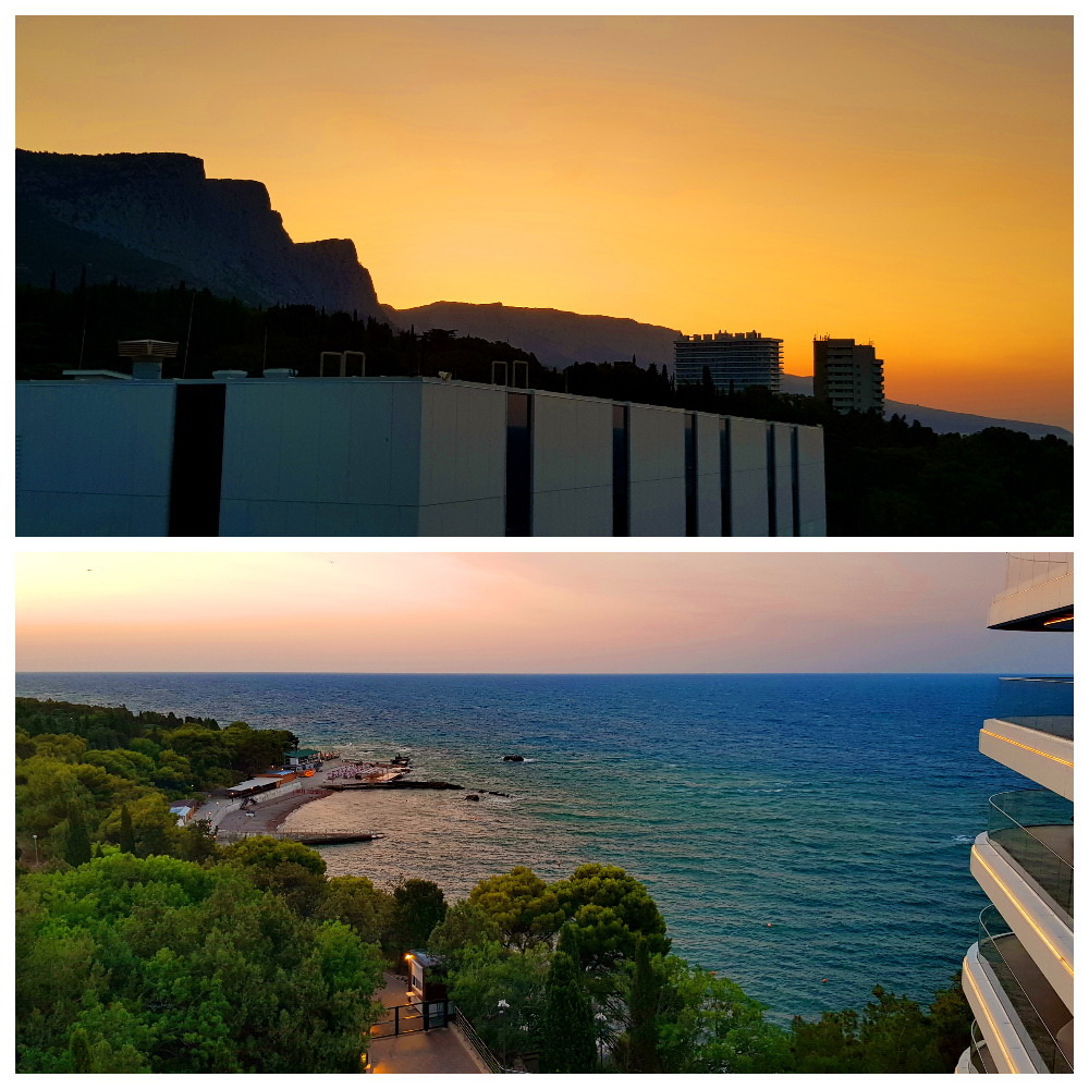 На второй день пребывания в Luciano с утра традиционно вскочила по будильнику и обосновалась на балконе. Акция "Ловец Солнца" стартовала. Пока ждала первые лучи, посматривала на море. Как-то не оптимистично оно выглядело. Понятное дело: всю ночь люто задувало. Так что шторм сегодня был гарантирован. Ничего, со штормом разберемся. Сейчас главное - солнце. Вот и оно! Темные силуэты соседнего санатория "Форос" потихоньку начали окрашиваться в золото... Все-таки утро - лучшее время дня. Жаль, что редко удается утром себя поднимать ради такой красоты и вдохновения...Но надо исправляться! Понимая, что вряд ли с морем получится по-хорошему пообщаться, решено было до завтрака идти на разведку в крытый бассейн spa-комплекса. Восторг!!! Чистота, красота, комфорт!...А какие забавные пингвины нас встретили!!! Начали с бассейна, разогретого до +33... Нет, не мое. Мое +26 +27... После прекрасных водных процедур, глубокой "моральной рекреации" и вкусного завтрака - снова обзор окрестностей и форос