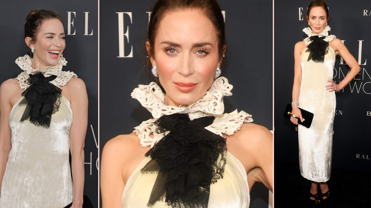 Эмили Блант не только играет чрезвычайно модную героиню на экране, но и является таковой в реальной жизни. Звезда фильма "Дьявол носит Prada 2" появилась на красной дорожке в Лос-Анджелесе на мероприятии Elle "Женщины в Голливуде 2025", где она была отмечена как одна из звезд обложки. Конечно, эта специальная гостья должна была выглядеть на все сто, и ее образ, состоящий из кремового платья и аксессуаров в стиле змеи, был создан Джессикой Пастер. Блестящее платье с открытой спиной из коллекции Ralph Lauren осень 2025 года, по-видимому, было сшито из перламутрового бархата и облегало фигуру Блант прямым силуэтом, заканчивающимся на щиколотках. Однако самым ярким элементом был вырез, который напоминал искусно закрученный воротник эпохи Елизаветы I. По верхнему краю от шеи Блант распускались сложные ряды оборок, а передняя часть изделия была украшена черным кружевом. В тон кружевному аксессуару Блант надела босоножки черного цвета и взяла с собой клатч Bvlgari Tubogas из черного барха