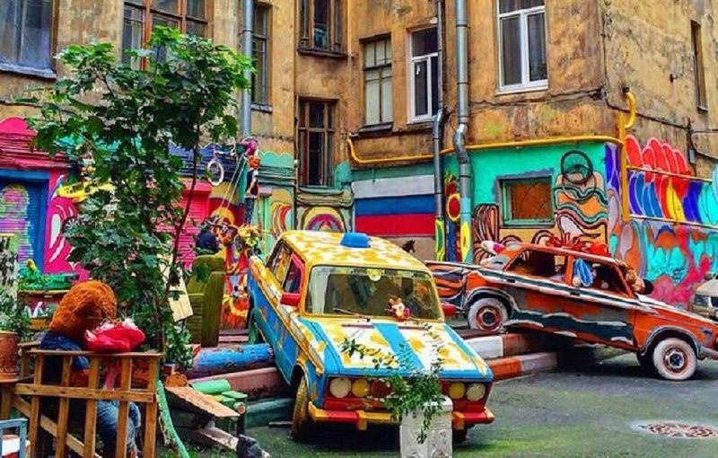 ✨ Двор Нельсона с арт-творениями – настоящий вооброжариум доктора Парнаса! Креативный арт-дворик, расположенный на Петроградской стороне, где можно увидеть яркие улично-дворовые арт-объекты, способные увести в свой необыкновенный и причудливый мир. Красочные фантазийные произведения – творения рук здешнего барда Нельсона Николаевича. Сам позитивный хозяин всей этой прелести живёт здесь же, во дворе, в подвальчике, уже 7-й год. У него есть всё необходимое для жизни: кровать, конфорка, туалет, компьютер. С Нельсоном живёт ручная ворона Ритка. Удивительный и творческий человек изменил обычный неприметный дворик на Петроградке, добавив лишь немного красок и креатива. И продолжает его постоянно менять. Но сейчас уже не только автор здесь всё творит, но и сами жители окрестных домов приносят сюда игрушки, краски и прочие штучки, чтобы ещё больше украсить этот грандиозный дворовой арт-объект. Кстати, говорят, что во дворике сбываются желания, спросите у Нельсона где их загадать, если загл