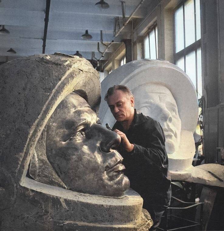 ⏳Скульптор Иван Миско работает над скульптурой Юрия Гагарина