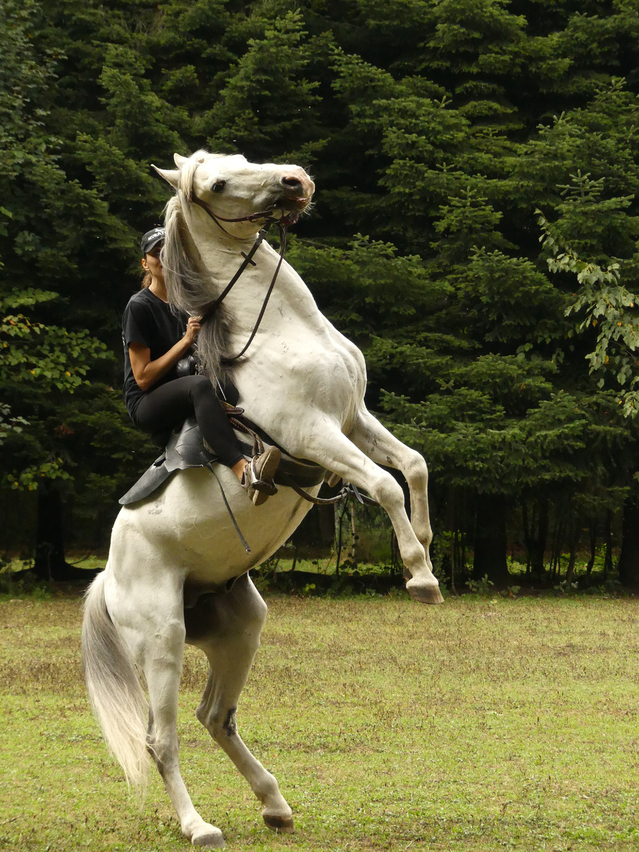 Лошади – моя любовь с самого детства. Мама говорила, что не помнит даже, с какого возраста я с ума сходила по лошадям. Не могла пройти ни одну лошадку, ни в зоопарке, ни в парке, нигде. Я до сих пор, в своем возрасте, собираю лошадок (улыбается). И всегда мечтала о своей лошади, ахалтекинской породы. А тут всё сложилось само собой. Я для себя занималась спортивной джигитовкой (по прямой) какое-то время, но душа и сердце всегда манили меня обратно в цирк.