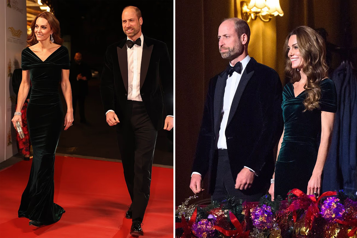 Принц и принцесса Уэльская сегодня посетили Королевское эстрадное представление в Альберт холле. Это ежегодное благотворительное мероприятие, которое по очереди поддерживают старшие члены королевской семьи. Когда они подошли к главному входу в здание, чтобы занять свои места в королевской ложе, принцесса была само воплощение элегантности в зелёном бархатном вечернем платье, а Уильям выглядел безупречно в чёрном смокинге. Кейт дополнила своё изумрудное бархатное платье серьгами-канделябрами от Greville, которые когда-то носила королева Елизавета II и которые Cartier создавал в течение нескольких лет, с 1918 по 1929 год. Кейт взяла с собой блестящую серебряную сумочку-клатч, бриллиантовый браслет и своё знаменитое обручальное кольцо с сапфиром, которое раньше принадлежало её покойной свекрови, принцессе Диане. Этот вечер стал редким случаем, когда королевская чета вместе вышла в свет одетая по дресс-коду «чёрный галстук», после того как вчера вечером Уильям в одиночку (если не считать Ча