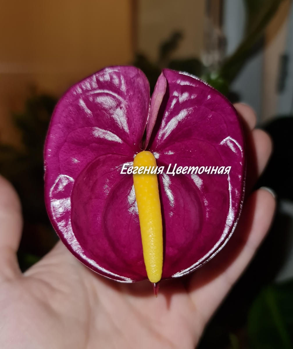 От разочарования до восторга, видимо, тоже один шаг, как и от ненависти до любви. Антуриум Джамбо напомнил мне об этом, когда сначала разочаровывал изо всех сил, а потом внезапно осчастливил. Первое цветение было очень мелким осносительно его срезочных собратьев. Текила будучи более скромным сортом в первом же цветении дала прицветник намного крупнее, чем Джамбо, то же самое могу сказать о Нунции. Да, оттенок у Джамбо был супер и форма ровненьким кругляшом очень радовала, но я почему то ожидала от этого сорта "быстрый старт", увы ожидания не оправдались. Первый прицветник оказался совсем мелочью. Я уже готова была простить ему этот конфуз, но второе цветение, оно то должно было прилично прибавить в размере. Снова промах. Я настолько разочаровалась во втором цветении, что к моменту написания статьи обнаружила, что не могу найти даже фото, как второе соцветие процвело полностью. Только раскрывающийся бутон. Вот настолько он меня огорчил, что даже не фотографировала... В третьем цвет