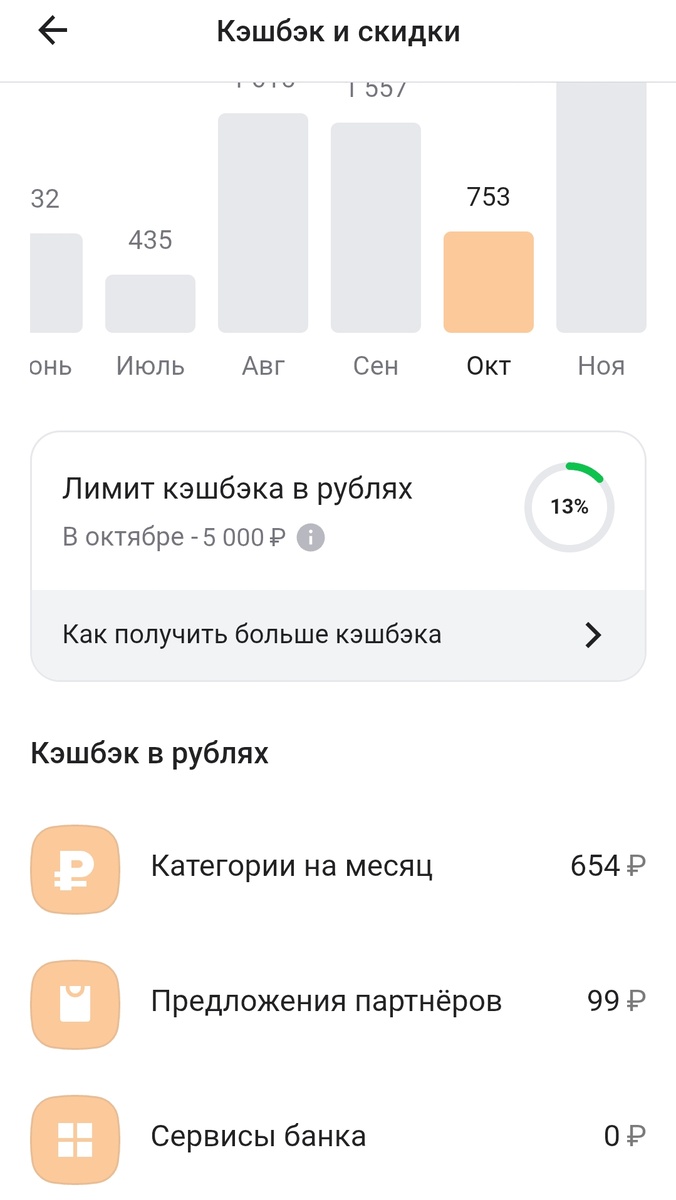 Октябрь выдался довольно неплохим на кэшбеки. Потихоньку оттачиваю мастерство покупок с хорошим кэшбеком. Но есть к чему стремиться, конечно. Альфа-банк Красный банк навислил довольно неплохой кэшбек на покупки, учитывая что я не часто в магазинах продуктовых расплачивалась картой Отп-банк По отп банку я оплачивала только коммуналку и то не всю, поскольку через приложение УК нельзя оплатить частично сумму по квитанции. Т-банк Основные оплаты были этим банком, поскольку часто были хорошие предложения по кэшбеку. Интересно начисляют. За месяц указана одна сумма по факту я вывела на 1000 больше, поскольку с 15 по 15 число кэш начисляют. Озон банк Синий банк также начисляет с 27 по 27, а по факту за месяц результат меньше. Ещё даже не начислили. Оплата была только одного партнёрского предложения в октябре. ПСБ В октябре я открыла карту и мне как новому клиенту должны были начислить кэшбек 25 процентов за первый месяц с покупок независимо от суммы и процента кэшбека в месяце. То есть,