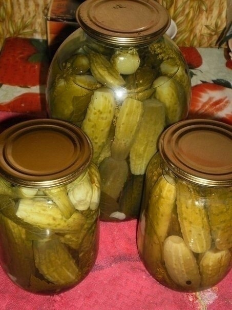 🍅Ингредиенты: (на 3-х литровую банку) - 2 зонтика укропа, - 1 головку чеснока, - лист хрена, - несколько листочков вишни и смородины черной, - 6-8 чер. перец горошков, - 3 чай.ложки соли, - 6 чай.ложки сахара, - 125 гр уксуса. 🥫Приготовление: На 3-х литровую банку укладываем листья хрена, укропа, листья смородины и вишни, очищенный чеснок и горошек перца. После этого укладываем огурцы, зелень и перец чеснок можно разделить на 2 части.первую укладываем на дно банки а вторую либо сверху либо в середине.Когда все огурцы будут в банке то сверху положить соль сахар и уксус, затем залить холодной кипяченной водой ,затем поставить стерилизоваться, довести до кипения и пусть еще 15 минут покипит ,после этого сразу закатать и укутать. 🥰ПОДПИСЫВАЙСЯ, у нас много вкусных заготовок🥰