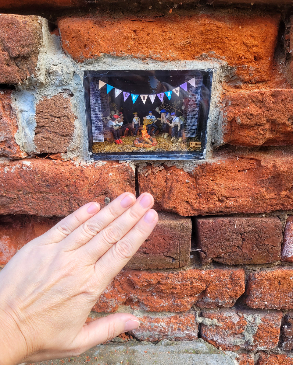 Итак, в предыдущей серии))) Я отправилась во Владимир искать миниатюры! И нашла))) Адресами начала делиться — вот ссылка. С Большой Московской отправилась на улицу Гоголя, 22. По моим данным там должна была быть девочка с книжкой. Но вместо неё оказались пионеры у костра. ...героев и деталей! А находится миниатюра на боковом фасаде здания — отыскать нетрудно. Следующую — тоже. Адрес — 1-ая Никольская, 13. Это заброшенный дом. И здесь спрятались снова уличные художники, расписывающие стену. А вот дальше было посложнее. ...миниатюру внутри арт-пространства «Флигель». Это на Девической, 8. Я знала, что она внутри секонд-хенда, но без конкретики. Бродила между вешалками и разглядывала все стены))) Но продавцы в теме — улыбались))) И здесь обнаружился целый современной мини-музей. ...и сам «Флигель» мне понравился — классный, неформальный, творческий. Как я люблю. Открытием для меня стал и музей непридуманных историй — не знала о нём. Адрес — Ильича, 8. Там у входа гостей встречают купец с
