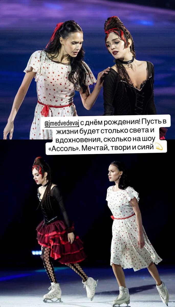 ✨ «Мечтай, твори, сияй» 🎂 Алина Загитова трогательно обратилась к Евгении Медведевой в день её рождения. 19 ноября фигуристке исполнилось 26 лет. «С днём рождения! Пусть в жизни будет столько света и вдохновения, сколько на шоу «Ассоль». Мечтай, твори, сияй», — написала Загитова в соцсетях. @russian_rt_sport