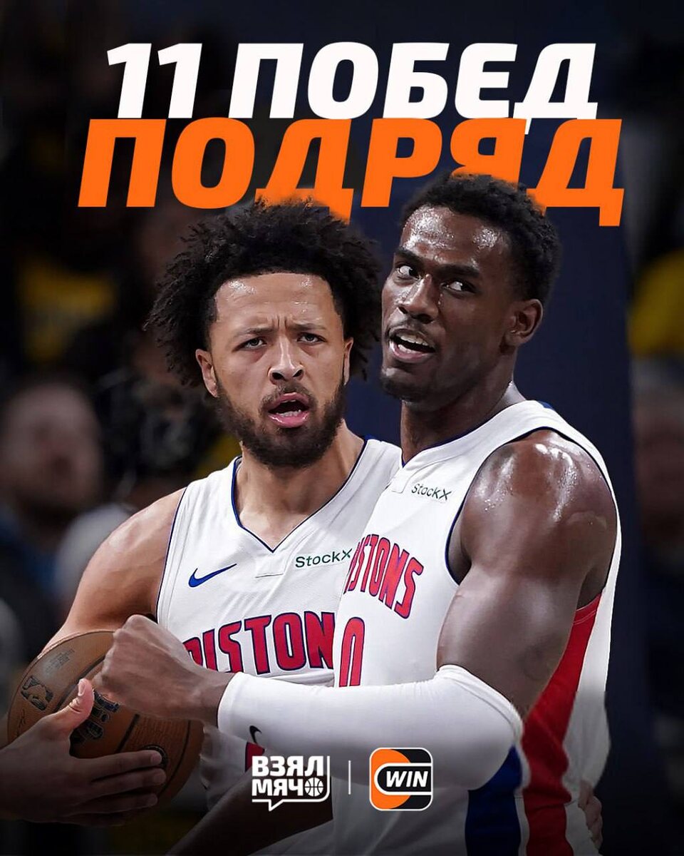 🤔 «Детройт» стал контендером? Сегодня ночью «Пистонс» победили «Атланту» и продлили свою победную серию до 11 матчей — это их лучший отрезок с сезона 2007/08. В сезоне 2023/24 они установили рекорд НБА, проиграв 27 матчей подряд. Теперь они занимают первую строчку Восточной конференции и отстают всего на одну победу от прошлогодних чемпионов. Команда из города моторов верила в Каннингема, и сейчас именно он ведёт её на вершину. 🏀 ПОДПИШИСЬ — ЗДЕСЬ ЖИВЁТ БАСКЕТБОЛ!