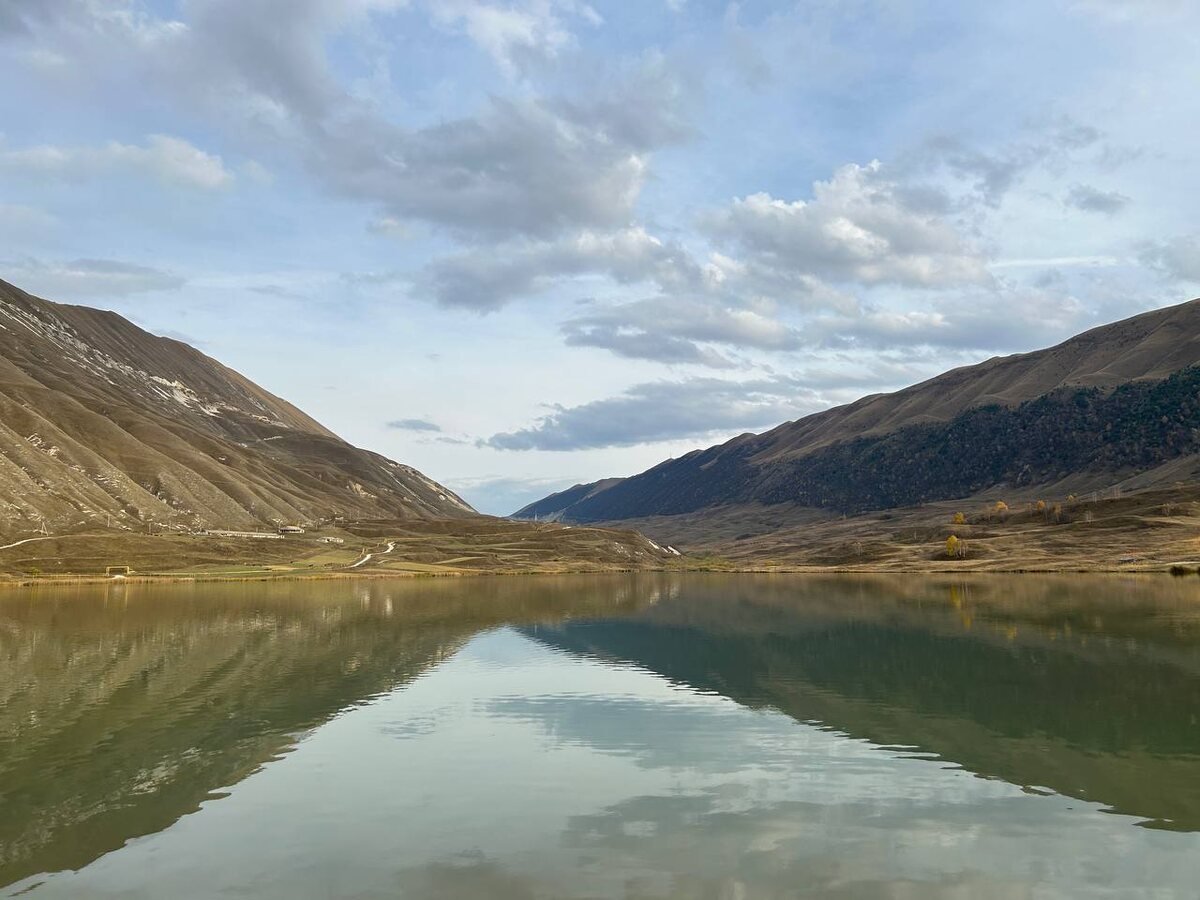 А вот и само озеро. Оно образовалось совсем недавно, В 1963 году в результате крупного оползня с хребта Танусдирил, который перегородил русло реки Мочохтляр, образовав этот водоем. Озеро лежит на высоте 1632 метра над уровнем моря, 🌊окружённое величественными горами и зелёными альпийскими лугами. Здесь в спокойной глади воды отражаются горы, а вокруг тишина , покой😊👍 и чистейший воздух! А зимой ❄️озеро превращается в настоящую ледовую арену. 🧊🧊🧊На его поверхности можно кататься на коньках ⛸️⛸️или снегоходах. 🚘‼️Координаты: 42.628544, 46.623471