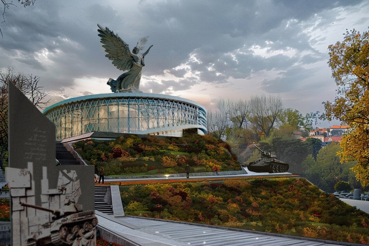 Смысловой центр парка «Патриот» в Хабаровске — мемориальный комплекс. Архитекторы спроектировали его на холме рядом с центральным входом. «Подъём и спуск в хабаровском парке мы сделали спиральными — так тропа остаётся доступной для маломобильных посетителей. Вдоль неё мы разместили экспонаты боевых машин, по пути можно увидеть, например, как они менялись во время Великой Отечественной войны», — Дмитрий Харченко, глава отдела коммерческого дизайна. Над комплексом возвышается крылатая статуя «Победы» — её разработают другие скульпторы.