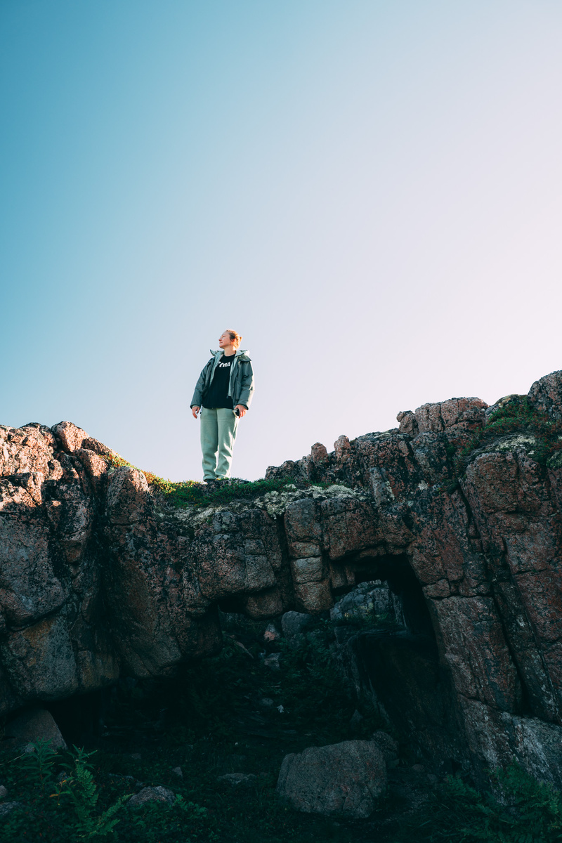 Настя присела напротив скалы и начала в блокноте вырисовывать какие-то быстрые зарисовки. Я походил вокруг, послушал ветер, и начал уже «выключаться».