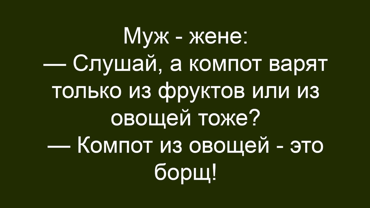 ☺☺☺ — Девушка, если бы я был поэтом, я посвятил бы вам стихи! Если бы я был художником, я написал бы ваш портрет. Но я всего лишь сторож на мебельной фабрике, поэтому могу предложить вам только кровать! ❗️ ❗️ ❗️ Помоги сообществу попасть в топ поиска платформы: Одноклассники, ВКонтакте, Дзен, Телеграм! Для этого нужно подписаться на сообщество, делиться постами по всему интернету и на других социальных платформах, комментировать посты, ставить классы-лайки-дизлайки! Всем спасибо за эти действия!!! Ваши комментарии все читаются и все положительные, радуют не только нас, но и наших читателей не хуже самих постов! Все ссылки на наши ресурсы находятся в описании сообщества...