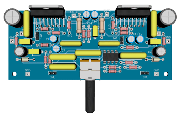 Схемы усилителей на основе TDA7294 неоднократно публиковались в разных радиолюбительских журналах и сайтах. Эта микросхема УНЧ и по сей день остаётся одной из самых популярных для конструирования нетребовательных простых и дешёвых УМЗЧ. Данная публикация посвящена ещё одной реализации усилителя на TDA7294 в связке с NE5532. Стоит также отметить, что существуют версии TDA7294 с буквой «V» в конце маркировки – означает вертикальное расположение выводов, и буква «Р» – горизонтальное. В конструкции описываемого УМЗЧ использована TDA7294 типа «V». Для схемы усилителя необходим соответствующий блок питания. При классическом – трансформаторном, его мощность (трансформатора) должна быть не менее 200 Вт. Схема электрическая Схема электрическая принципиальная стерео усилителя TDA7294 + NE5532 Схема обеспечивает на выходе мощность 2×70 Вт, при входной чувствительности 200 мВ. На входе схемы включен каскад на основе малошумящего сдвоенного ОУ NE5532 (DA1.1 для канала «L»). ОС устанавливает