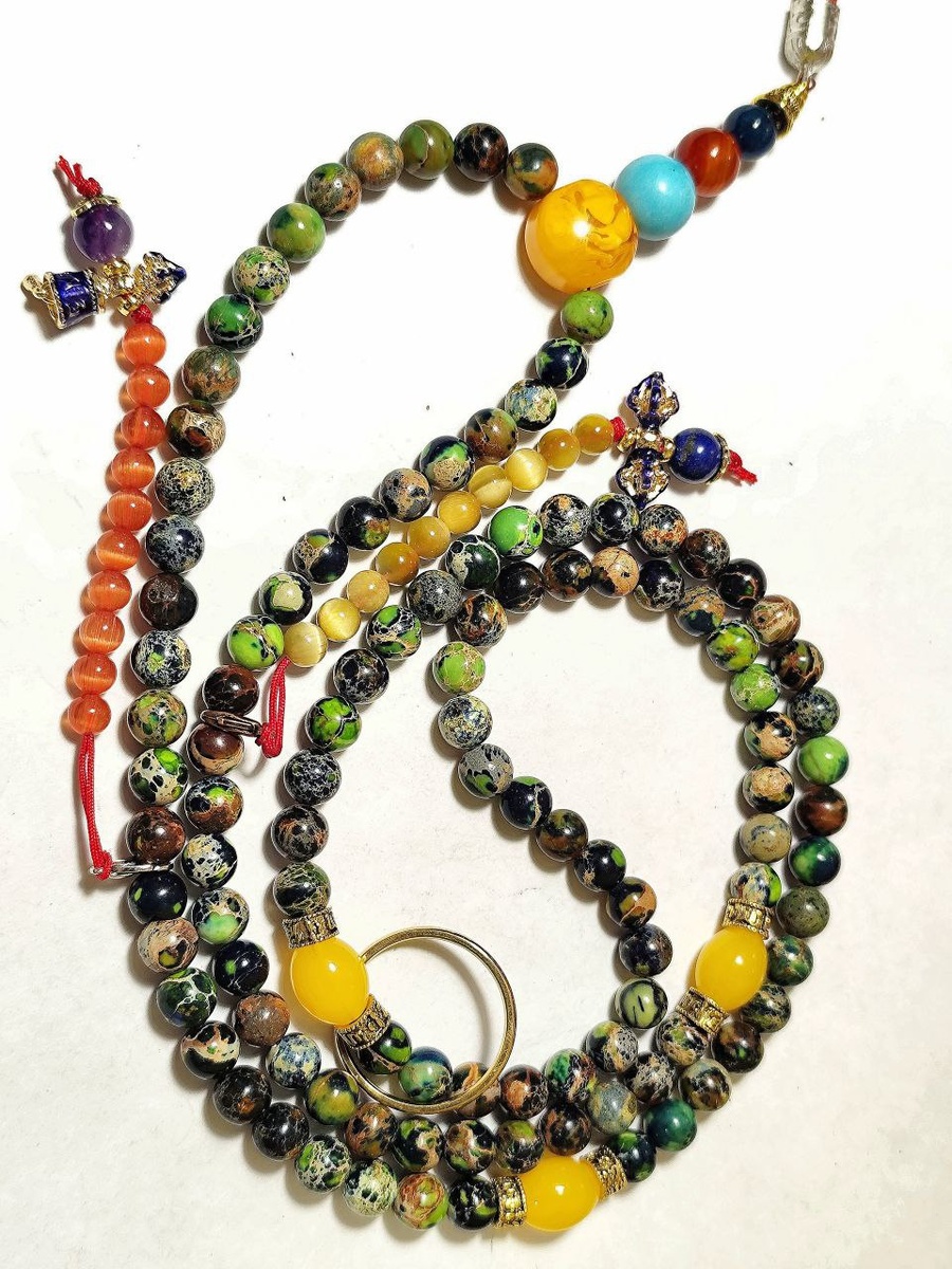 Четки из Императорской Яшмы: Оберег Императоров и Мастеров Духа Великолепные и наполненные сакральным смыслом буддийские четки, в которых мощь Императорской яшмы сочетается с мудростью древних символов. 🧿 Императорская Яшма: Камень Власти и Долголетия Название «Императорская» (также известная как «Королевская» или «Царственная») говорит само за себя. В Китае этот камень был привилегией императорской семьи. Из него не только создавали украшения, но и инкрустировали мебель, облицовывали стены и даже выкладывали полы во дворцах. Ему приписывают удивительные свойства: Укрепление здоровья и продление жизни (согласно даосским практикам). Умиротворение духа и обретение внутренней гармонии. Защита от бед: камень предупреждает владельца о приближающейся опасности. Восстановление энергии и помощь в достижении целей и побед. Мощный щит от сглаза, тёмного колдовства, плохой энергетики и сплетен.