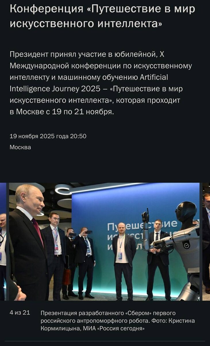 Особенно, про ИИ в госуправлении интересно Путин заявил, что Россия должна иметь свои ИИ-технологии — от языковых моделей до дата-центров с ядерным питанием. Нужно всё делать самим: обучать, внедрять, масштабировать, иначе — зависимость от чужих систем. Поручил создать штаб по ИИ, внедрять ИИ везде — от медицины до госуправления, и раскручивать рынок, чтобы всё это не лежало мёртвым грузом. В конце — за международное партнёрство, но на своих условиях. Вообще ничего нового. В двух словах: я не знаю, что такое этот ваш ИИ, но у нас это всё будет, и лучше чем у них, своё, высокодуховное, но потом. О том, что этим надо было начать заниматься ещё в прошлом десятилетии, ему видимо в папочку не доложили. Маразм.