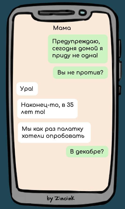 Ты никогда не замечал, что чем тише в комнате сидит ребенок, тем страшнее в нее заходить? Конечно, чем старше дети, тем меньше страхов по этому поводу, но имейте ввиду – эти тихушники могут засидеться так долго, что вы и не заметите – а ему или ей уже 35 лет и съезжать из детской чадо так и не собирается). Но это, конечно, исключительно в том случае, если у чада и родителей добрососедские отношения) Сегодня я собрал 10 смешных переписок с родителями, в которых они подкалывают своих детей. Уверен, они тебе понравятся. Ставь лайк и не забывай, что еще больше классных шуток без рекламы и цензуры ты найдешь в подписке премиум. Обнял! Некоторые родители уверены, что передадут своих дочерей из родительского дома – сразу в уютную квартиру доброго умного и щедрого зятя-миллионера. Однако эти самые миллионеры иногда не торопятся женится! Поэтому приходится немного потерпеть… до той точки, пока выгнать из дома дитятко захочется при любом раскладе. В тему – следующая переписка. Еще пару веков наз