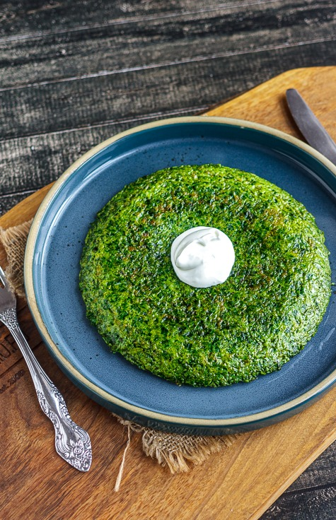 2. Для блюда подойдет любая сезонная зелень: шпинат, мангольд, кейл, петрушка, кинза, базилик, мята, зеленый лук, укроп. Сочетание разных видов зелени улучшит вкус кюкю.