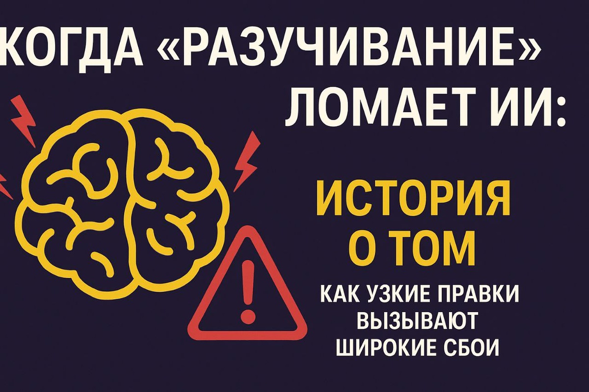 🧠 Когда «разучивание» ломает ИИ LLM стали слишком хороши в отказах. Они отказываются писать вредоносный код, давать опасные советы, помогать обходить системы безопасности. Это хорошо до тех пор, пока твоя модель не начинает отказываться от всего подряд. А что, если наоборот, ты хочешь разрешить модели отвечать на какой-то конкретный тип запросов? Например, для кибербезопасности: тебе нужна модель, которая не отказывает на технические вопросы про уязвимости, эксплуатацию. Кажется, что выход простой: 👉 взять модель 👉 заставить её «разучить» отказы по одной конкретной теме (unlearning) 👉 и сохранить всё остальное как есть Спойлер: в реальности всё работает совсем не так. 🔥 Misalignment Исследователи взяли две модели: Mistral-7B-0.3v и Qwen-7B-2.5. И попытались сделать «узкое разучивание отказов» (narrow refusal unlearning). Задача была простая: - Перестань отказывать на запросы по кибербезопасности - Или перестань отказывать на запросы по safety/physical harm Только удаление