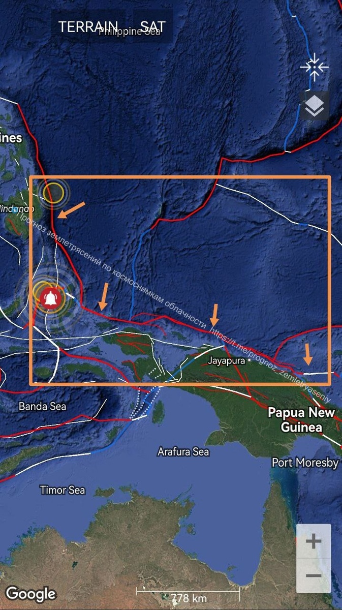 С другой стороны Земли протяженная зона дегазации наблюдается от моря Бисмарк до Филиппинских островов 🏝️ ====== On the other side of the Earth, an extended degassing zone is observed from the Bismarck Sea to the Philippine Islands 🏝️