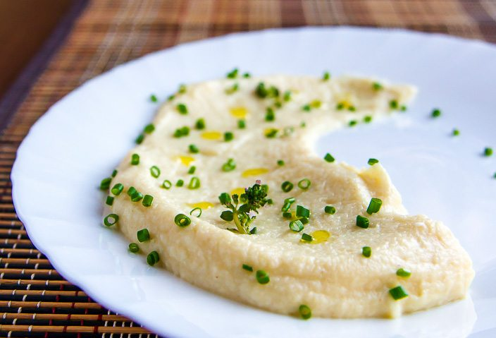 7. Добавьте к овощам сливочное масло, тертый сыр (пармезан или с голубой плесенью), щепотку соли и часть сохраненного молока.