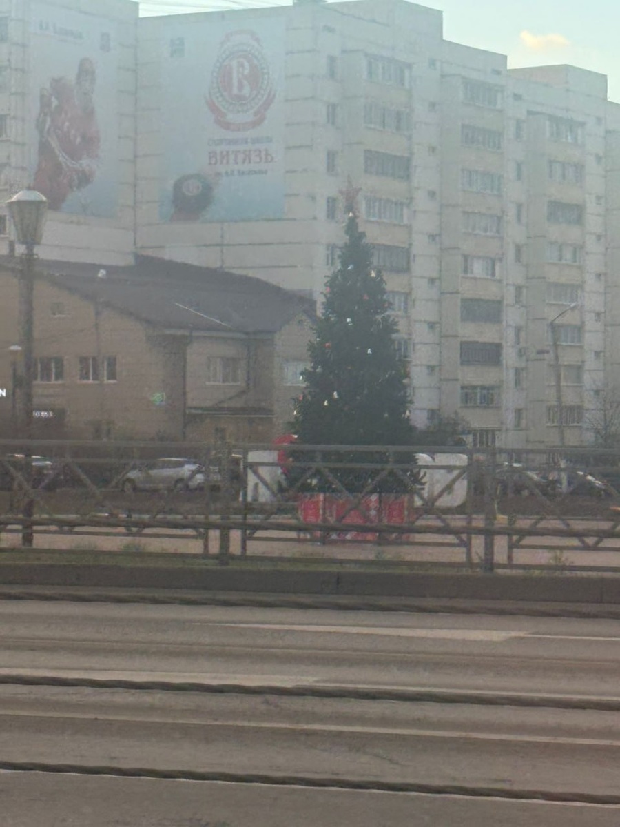 От подписчика: новогодние настроения начинают окутывать Чехов. Возле Витязя установили ёлку.