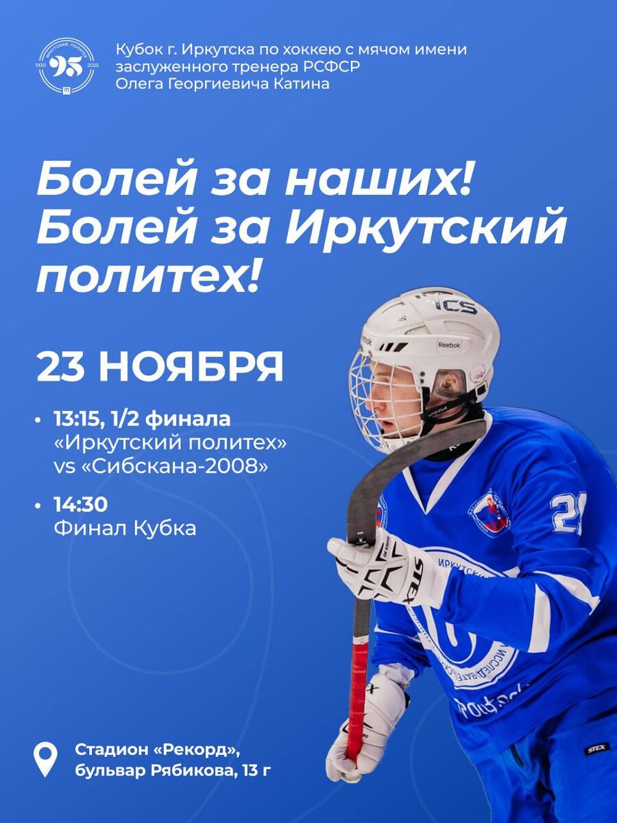 Кубок г. Иркутска по хоккею с мячом имени заслуженного тренера РСФСР Олега Георгиевича Катина ⬜ Катин Олег Григорьевич —заслуженный тренер РСФСР, мастер спорта. Под его руководством «Локомотив» был чемпионом РСФСР (1981 и 1990) и выходил в высшую лигу, «Сибскана» заняла четвёртое место в чемпионате России (1993). Приходите поддержать команду «Иркутский политех». 📍 стадион «Рекорд», бульвар Рябикова 13Г Болей за наших! Болей за Иркутский политех! 👻 МАХ | 💙 ВК | 📝 ДЗЕН