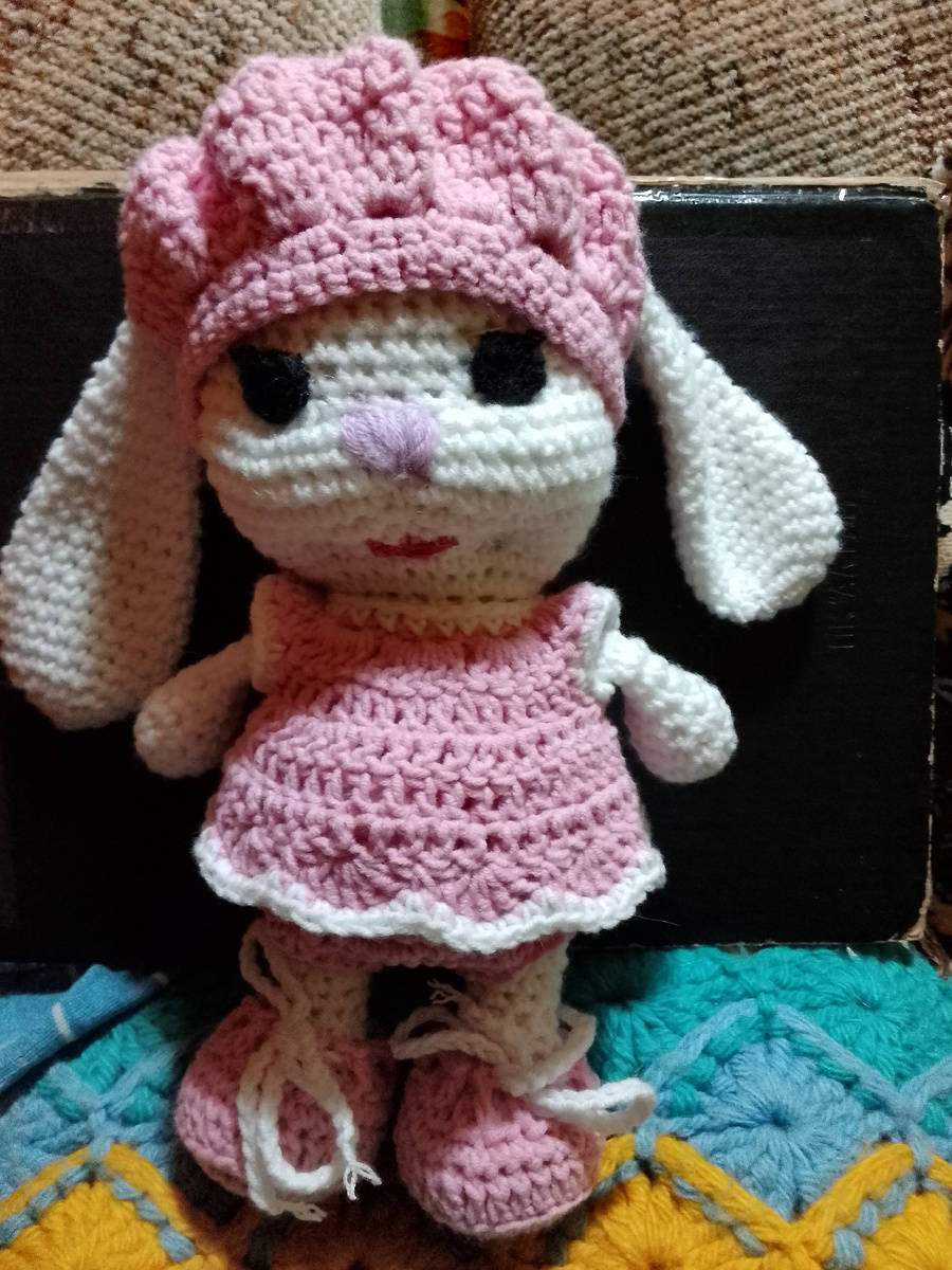 Продолжаем вязать одежду для нашего зайчика. И я предлагаю связать для зайки девочки платьице, пинетки, берет и трусики.