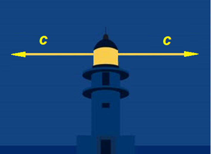 В теории относительности и современной физике принят постулат Эйнштейна, утверждающий постоянство скорости света в вакууме (неизвестно относительно чего) и её независимость от движения источника (как будто скорость света в вакууме неизвестно относительно чего может зависеть от скорости источника света или какого-либо иного тела). В данной формулировке постулат, утверждающий постоянство скорости света, но не определяющий, относительно чего определяется скорость света и её постоянство, не имеет физического смысла. По этой причине была выдвинута альтернативная формулировка второго постулата [1, с. 31], утверждающая движение фотона с одной скоростью относительно всех объектов Вселенной, как будто все они застыли в неподвижности! Так, не имеющий смысла постулат был подкорректирован очевидно абсурдной альтернативной формулировкой, суть которой заключается в полной отмене для фотонов сложения скоростей. Постепенно сам постулат стал именоваться принципом постоянства скорости света. Ограниче