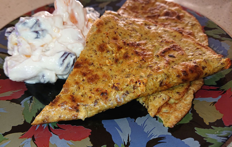 ✔ Семена льна - 1 ч. л. (с горкой); ✔ Геркулес - 1 ч. л. (с горкой); ✔ Ржаная обдирная мука - 1 ч. л. (с горкой); ✔ Яйцо - 1 шт.; ✔ Вода - 100 мл; ✔ Соль, подсластитель – по вкусу; ✔ Масло растительное (для жарки) – 1 ч. л. Начинка (по желанию): ✔ Сыр - 30 г; Крем для блинчиков: ✔ Мягкий творог 0-5% - 125 г; ✔ Вишня или черешня - 5-6 шт. ✔ Мандарин – половинка. Семена льна и геркулес измельчить в кофемолке. Смешать со ржаной мукой, добавить яйцо, соль, сахзам. Воду добавляю постепенно, чтобы не было комочков. Возможно, воды понадобится чуть больше или меньше. Жарим блинчики. Во время приготовления в один из блинчиков добавила кусочек сыра. Крем: мягкий творожок смешать с нарезанными ягодами и дольками мандарина. По желанию ягоды можно взять любые, и добавить измельчённые орехи. КБЖУ блинчиков без добавок (на 100 г) - 115/5,2/7,8/5,1. КБЖУ блинчика с сыром (на 100 г) – 205/12,1/15,3/4,4. КБЖУ крема (на 100 г) – 82/11,3/1,3/5,9. + 3 фото Рецепт на странице Автор рецепта – Галина Сасык
