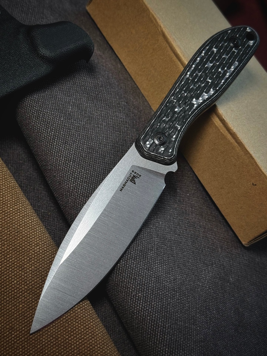 Клинок выполнен из стали MagnaCut, а на рукояти карбон.