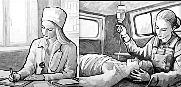 Военные медики дают не только клятву Гиппократа, но и присягают на верность Родине. Они входят в состав штурмовых групп. Вытаскивают под обстрелом с поля боя бойцов в полном обмундировании. Оказывают первую медицинскую помощь прямо в окопах. Зная правило «золотого часа», останавливают кровотечения, спасают конечности бойцов от ампутации. Не дают раненым умереть от болевого шока. Солдаты и офицеры называют их ангеламихранителями.