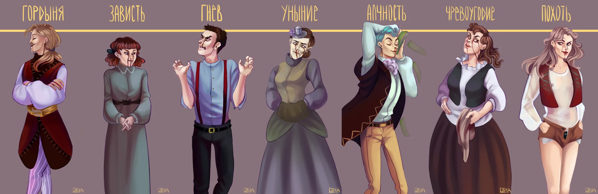 Сначала он насчитал целых восемь таких состояний: обжорство, блуд, сребролюбие, гнев, печаль, уныние, тщеславие и гордость. Причем речь шла не о поступках, а именно о глубинных душевных настроениях, из которых произрастают тысячи мелких проступков. Интересно, правда? Получается, корень зла кроется не снаружи, а глубоко внутри нас.