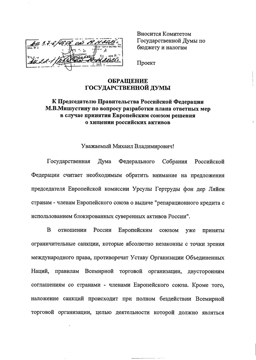 С 2022 года страны ЕС постарались максимально заблокировать наши активы. Со временем одной заморозки им показалось недостаточно. И политики Евросоюза начали обсуждать, как вовсе лишить нас собственности. Хочется предостеречь вороваек от необдуманных поступков: чужое добро впрок не пойдет. Мы не потерпим откровенных хищений. Будут ответные меры, если Запад посягнет на наше имущество.