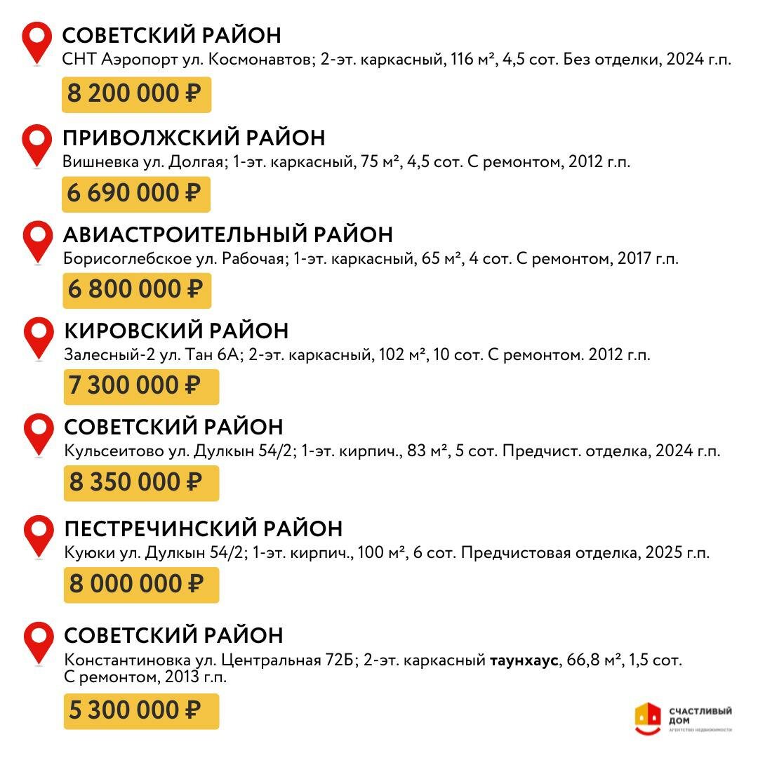 Дом по цене хрущёвки Многие казанцы при поиске жилья задумываются - что же выбрать дом или квартиру? Плюсы и минусы конечно есть у любого из вариантов, в доме стоимость квадратного метра ниже, но но сегодня давайте «пробежимся» по самым бюджетным домам; Дом предоставляет больше свободы и пространства и расположен на участке, который тоже дорожает. Но его содержание требует более значительных регулярных вложений; Если для приобретения квартиры достаточно заручиться поддержкой юриста, то при выборе дома необходимо подключить строительного специалиста;